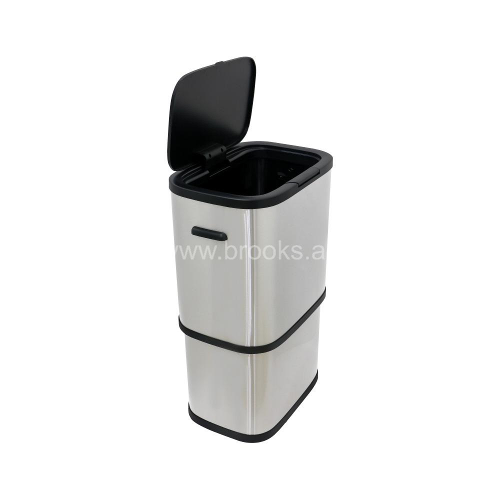 The Brooks Double Recycle Garbage Sensor/Push Bin is a highly functional and aesthetically pleasing waste management solution designed for modern indoor spaces. With a total capacity of 60 liters, it is intelligently divided into two separate 30-liter compartments, making it easy to sort and store both general waste and recyclables. This bin features a sleek silver stainless steel body that is not only durable and non-corrosive but also adds a sophisticated look to any kitchen or office. While the name suggests a sensor or push-lid, some models feature a hygienic foot pedal mechanism that opens both lids at once, offering a hands-free experience. For easy maintenance, the bin is equipped with two removable inner buckets, ensuring that emptying and cleaning are simple and hassle-free. The tight-fitting lids are designed to trap odors and keep the contents securely out of sight, making this bin a practical and clean addition to any home or workplace.
