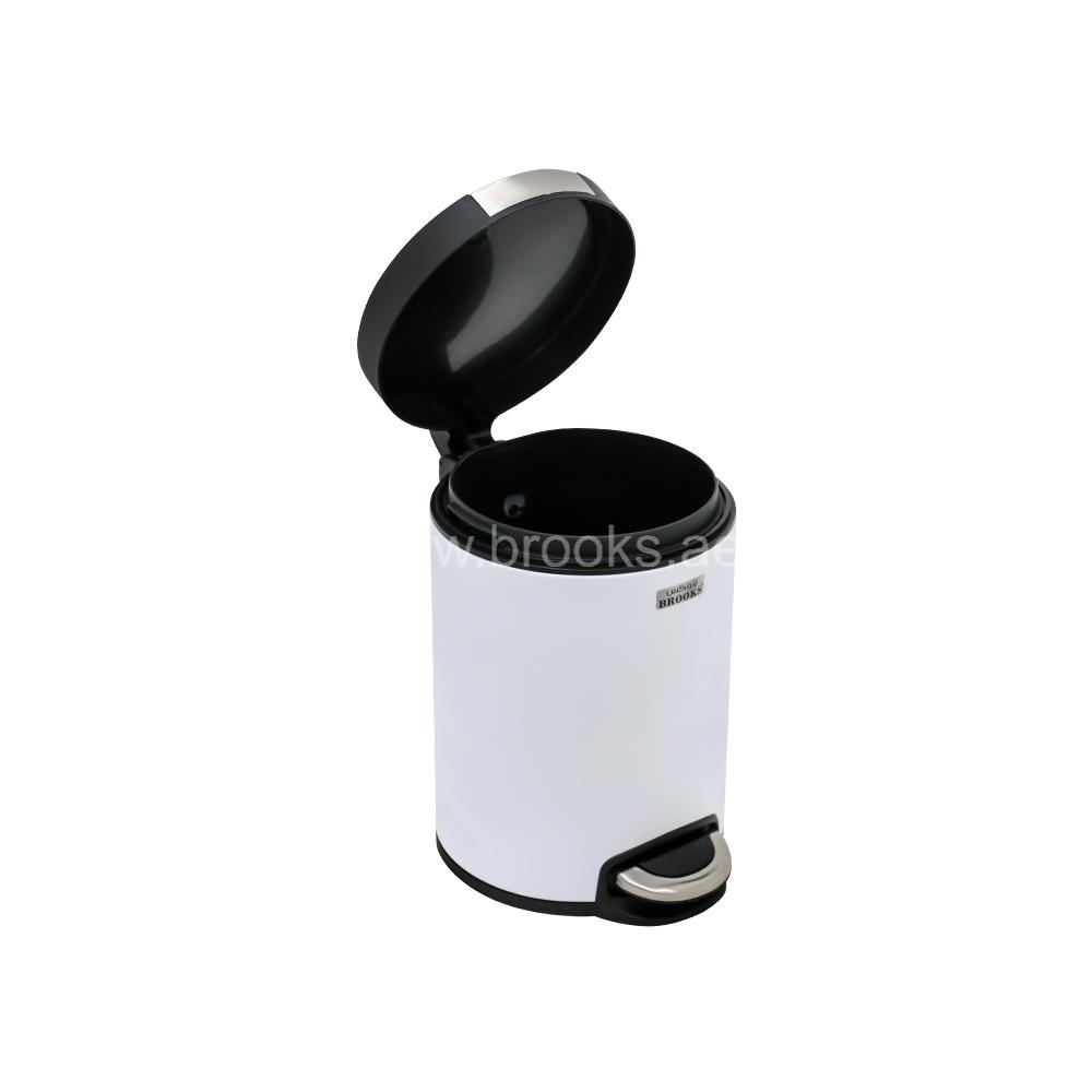 The Brooks ELVY Matt Steel White Pedal Bin (5 L) is a compact stainless-steel waste bin designed for hygienic, touch-free disposal. With its matte-silver finish and foot-operated pedal, this bin offers modern aesthetics and practical functionality in a small footprint. The pedal mechanism ensures smooth opening and keeps the lid closed securely when not in use. The sleek design fits well in bathrooms, offices, bedrooms, or kitchen nooks. This bin holds up to 5 liters, making it ideal for light-use areas like restrooms or personal workspaces. Constructed from corrosion-resistant stainless steel, it resists rust and staining over time. Inside, a removable container simplifies cleaning and liner replacement, preserving sanitation and ease of maintenance. The pedal mechanism allows hands-free operation, minimizing contact with the lid and reducing germ transfer. The lid closes silently and securely, helping contain odors and keep the area tidy. Its quiet hinge design is particularly suitable for settings where discretion and noise reduction are important.