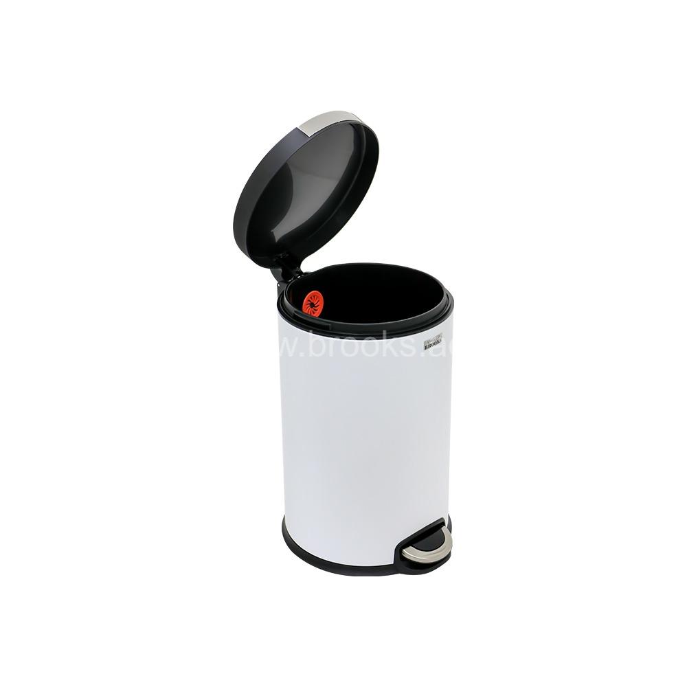 The Brooks ELVY Matt White Pedal Bin (12L) is a compact stainless-steel waste bin designed for hygienic, touch-free disposal. With its matte finish and foot-operated pedal, this bin offers modern aesthetics and practical functionality in a small footprint. The pedal mechanism ensures smooth opening and keeps the lid closed securely when not in use. The sleek design fits well in bathrooms, offices, bedrooms, or kitchen nooks. This bin holds up to 12 liters, making it ideal for light-use areas like restrooms or personal workspaces. Constructed from corrosion-resistant stainless steel, it resists rust and staining over time. Inside, a removable container simplifies cleaning and liner replacement, preserving sanitation and ease of maintenance. The pedal mechanism allows hands-free operation, minimizing contact with the lid and reducing germ transfer. The lid closes silently and securely, helping contain odors and keep the area tidy. Its quiet hinge design is particularly suitable for settings where discretion and noise reduction are important.