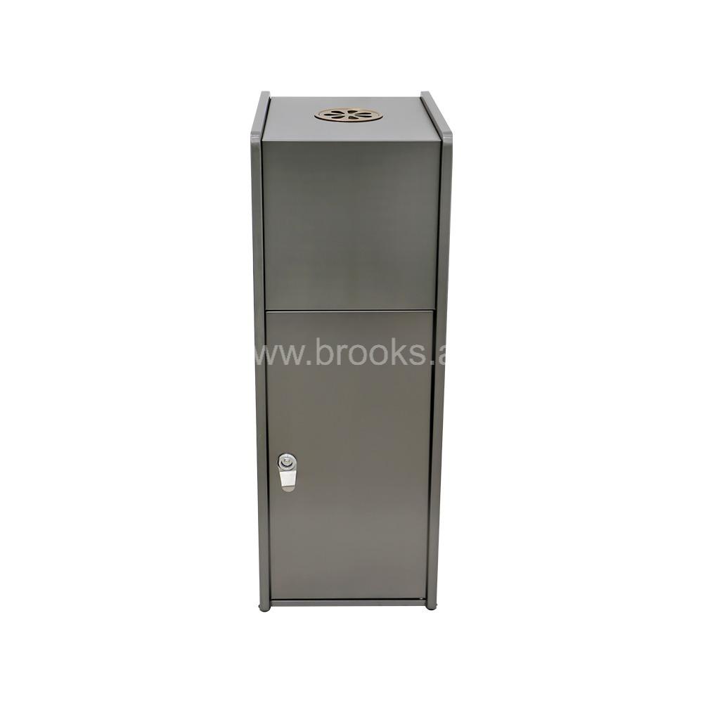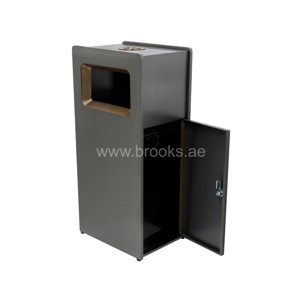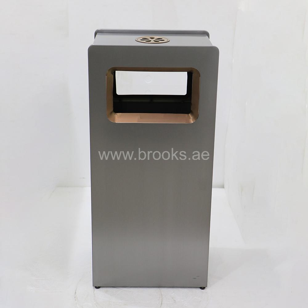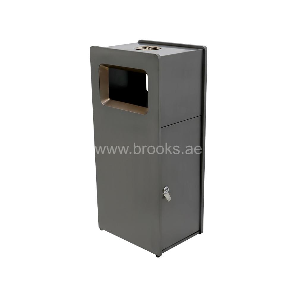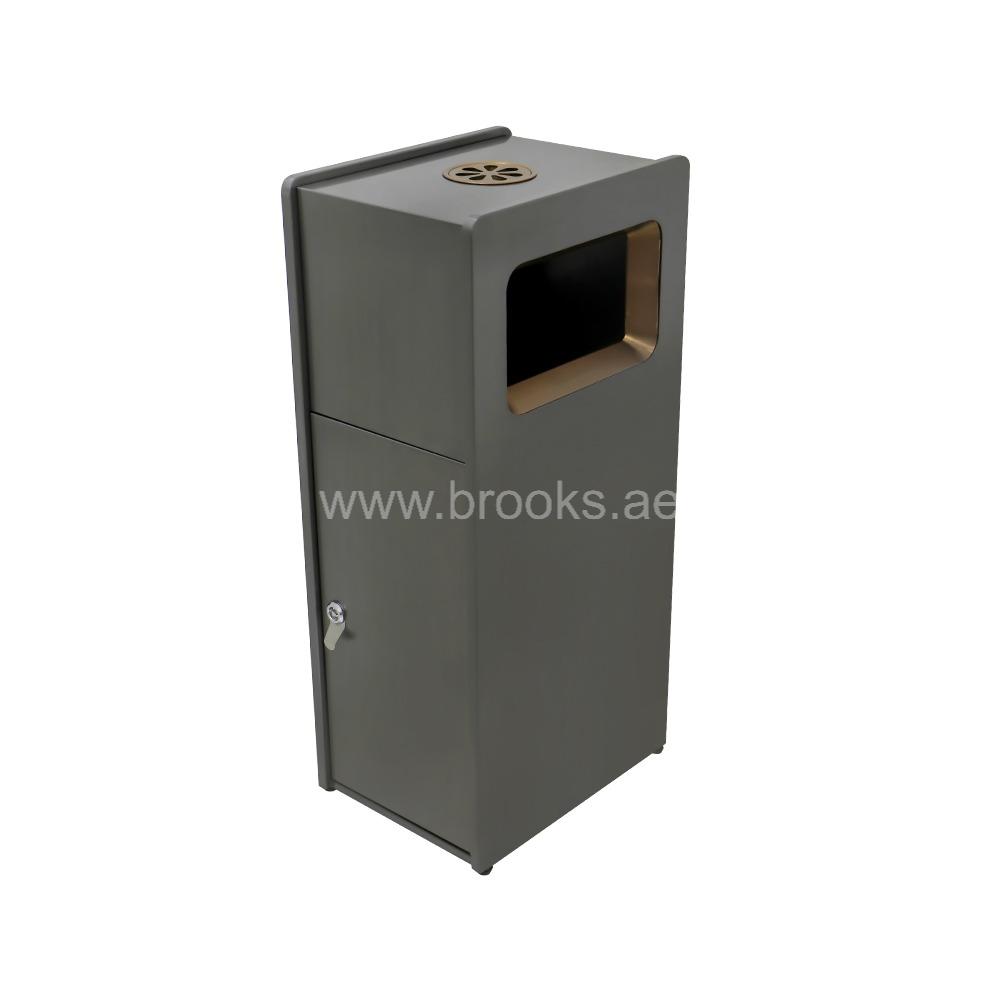 The Brooks HEDGE SS Ashtray Bin combines functionality with high-end style, making it an ideal choice for both indoor and outdoor smoking zones. Crafted from high-quality stainless steel, it features a striking black and gold finish that adds a touch of sophistication to any environment. The elegant color combination not only elevates the visual appeal but also ensures the bin blends seamlessly with modern architectural and interior designs. Designed with a built-in ashtray at the top and a spacious waste bin below, this 25-liter unit offers a complete solution for maintaining cleanliness in areas where smoking is permitted. The ashtray provides a safe and convenient space for cigarette disposal, preventing litter and reducing fire hazards, while the bin efficiently collects other waste. This dual-purpose design keeps surroundings tidy and well-organized. More than just a waste receptacle, the Brooks HEDGE SS Ashtray Bin reflects attention to both cleanliness and aesthetics. Whether placed in a lobby, smoking lounge, or outdoor seating area, it delivers an ideal balance of practicality and style.