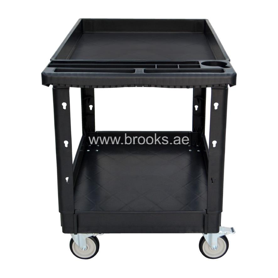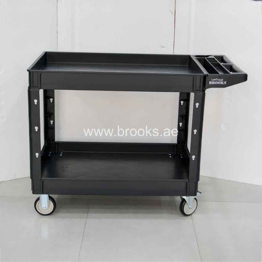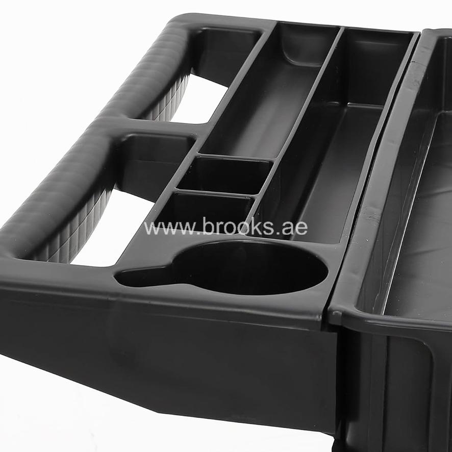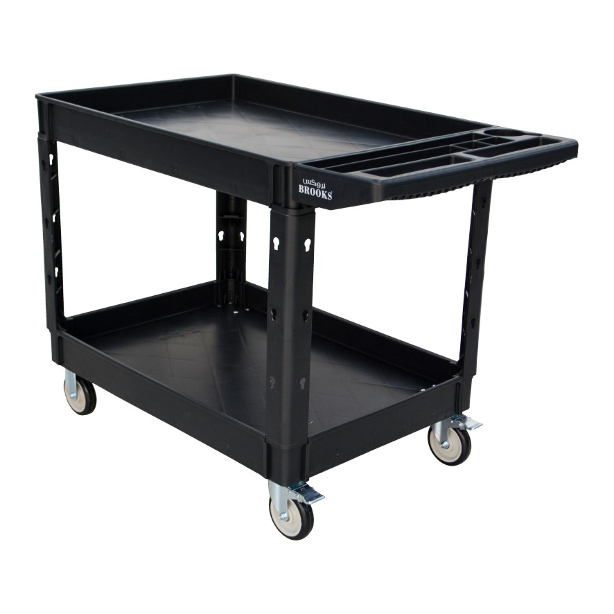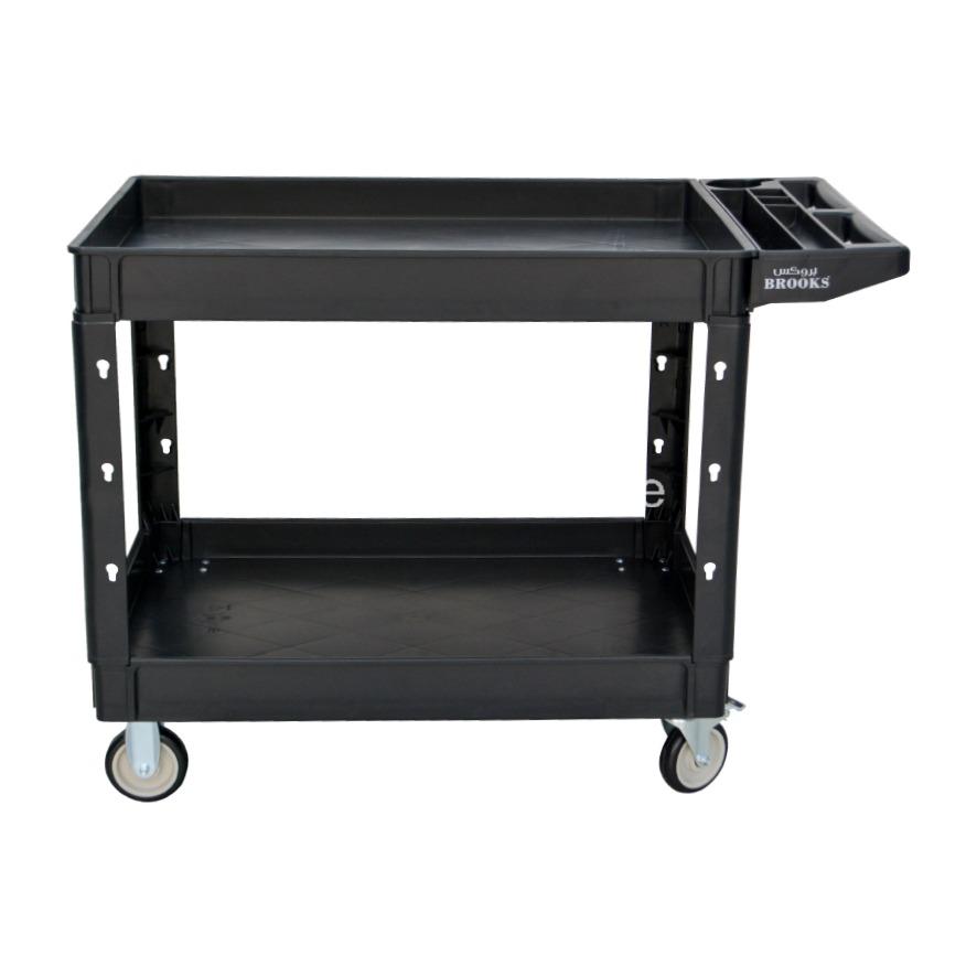 The Brooks HEXE Service Utility Cart in sleek black is built to handle demanding tasks in various settings, from restaurants and offices to warehouses and homes. Made with high-quality, durable materials, this cart ensures stability and longevity, making it an excellent choice for those who need a reliable transport and storage solution. Its reinforced shelves can hold a substantial amount of weight, allowing you to carry tools, supplies, dishes, or cleaning equipment with ease. Featuring a three-layer open-shelf design, the HEXE cart provides ample space for efficient organization. Whether you need to move items around a busy kitchen, transport office supplies, or set up a mobile workstation, this utility cart has you covered. The open-tier structure allows quick access to frequently used items, making it an essential tool for improved workflow and productivity. Equipped with 360-degree swivel casters, this cart glides effortlessly across different surfaces, ensuring easy maneuverability even in tight spaces. The ergonomic handles provide a comfortable grip, allowing for smooth control and navigation in fast-paced environments.