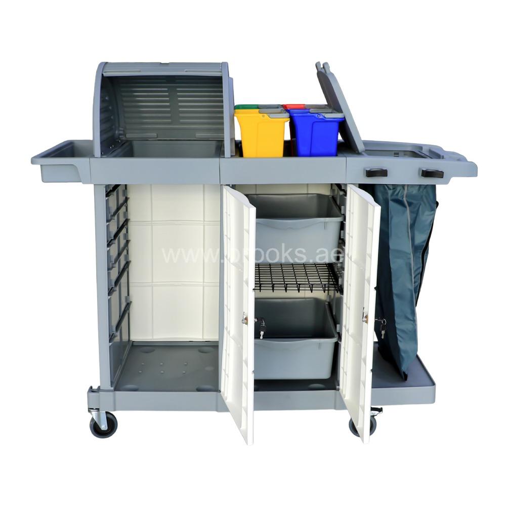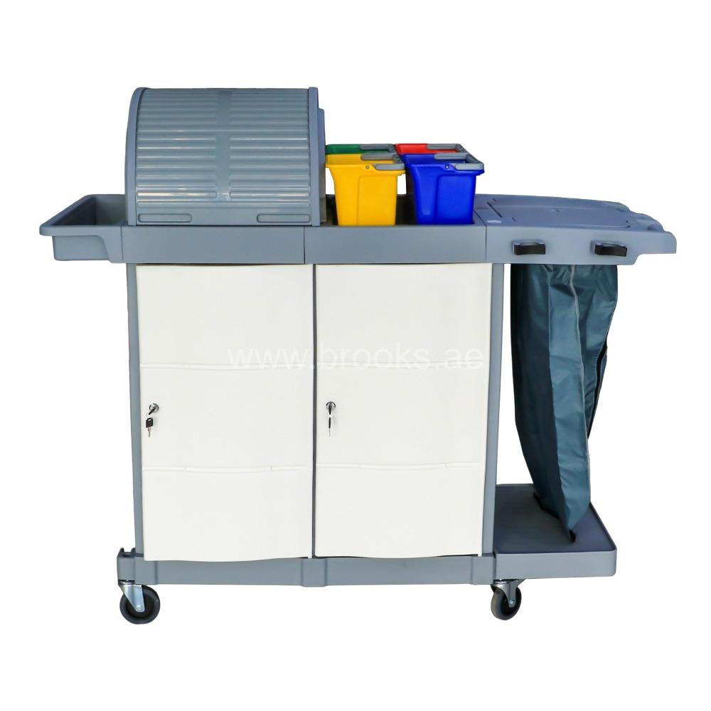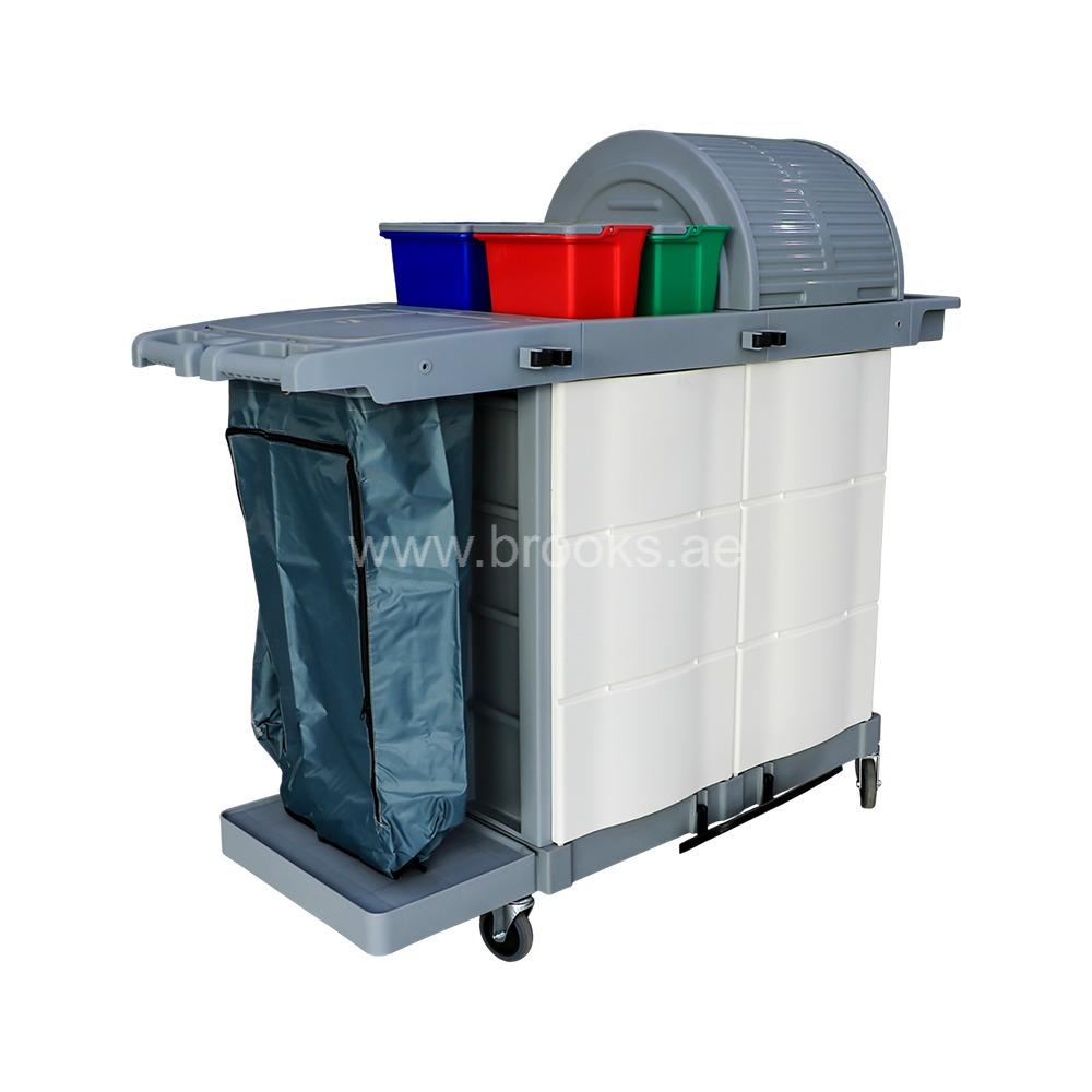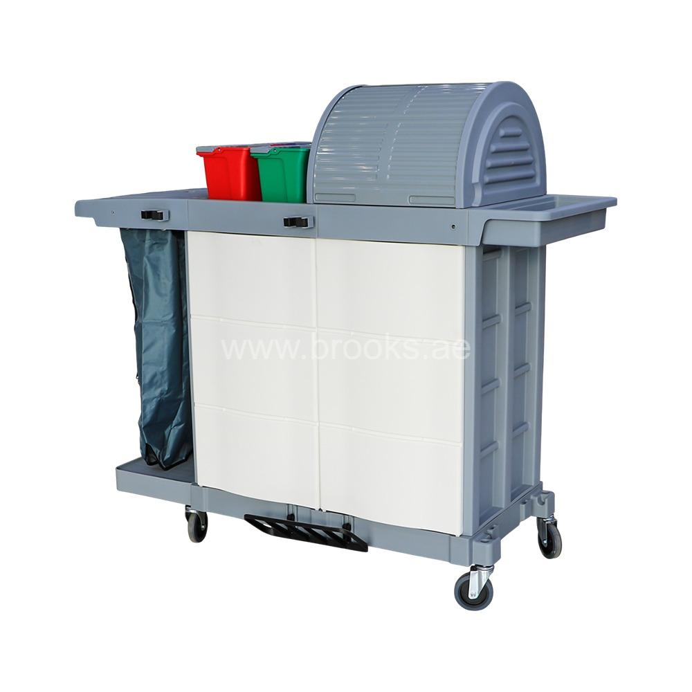 The Brooks Janitorial Multifunction Service Cart is a professional-grade cleaning and maintenance solution designed to streamline housekeeping and janitorial operations. Built for functionality, durability, and efficiency, this cart allows custodial staff to carry cleaning tools, waste bags, and essential supplies in a well-organized, mobile platform. It’s the ideal choice for hotels, hospitals, offices, malls, and large commercial facilities where hygiene and productivity are top priorities. Engineered with high-quality, impact-resistant plastic and a reinforced frame, the Brooks Janitorial Cart is built to withstand daily wear and tear in high-traffic environments. Its sleek and practical design features a wide base for stability, non-marking wheels for smooth movement, and ergonomic handles for easy maneuvering. This ensures safe and efficient operation, even in narrow corridors and busy workspaces.