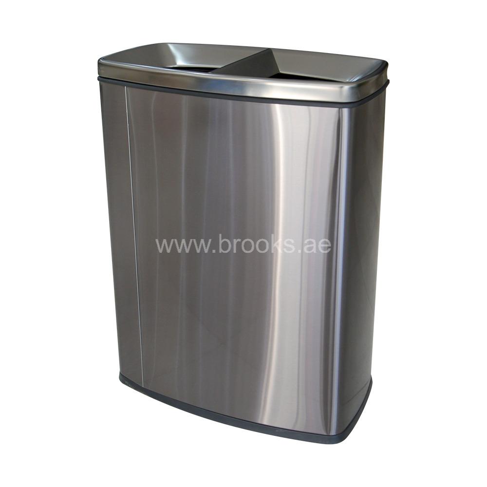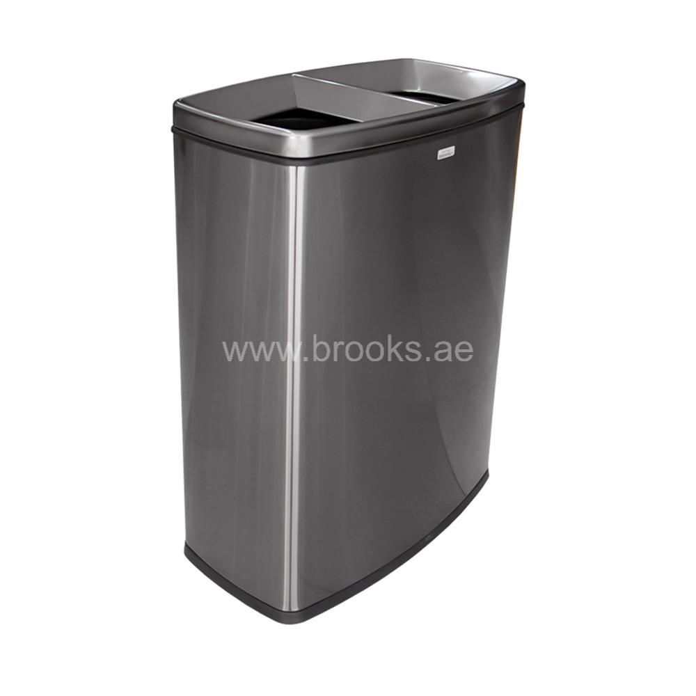 The Brooks Lenda 2 Stream SS ID Recycle Bin Black Gold 60 Ltr is a thoughtfully engineered waste management unit that blends functional waste segregation with refined aesthetics. This bin is ideal for kitchens, offices, and communal spaces where separating recyclables from general waste is important, but space and style also matter. The term “2 stream” in its name indicates that it’s designed with two separate compartments—effectively creating one bin that holds two distinct waste streams within a single footprint. With a total capacity of 60 litres, the bin typically includes two compartments of about 30 litres each, allowing users to dispose of recyclables (such as paper, plastic, and glass) in one section and general waste in the other. This not only cuts down on the number of separate bins needed but also simplifies daily routines by keeping recycling organized and accessible.