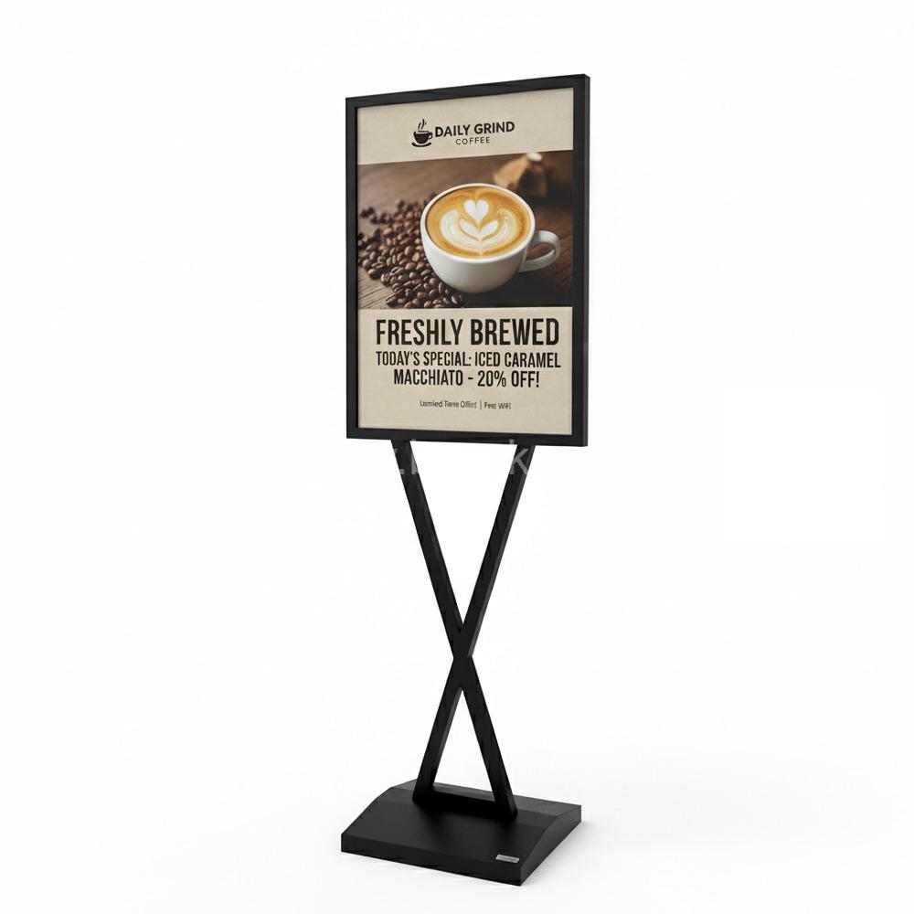 The Brooks MIXLA MS Sign Stand Black A2 is a sleek and functional display solution designed for environments where clarity, style, and practicality are essential. With a minimalist aesthetic and a bold matte black finish, this sign stand adds a touch of contemporary elegance while maintaining a clean and professional appearance. Whether placed in a corporate lobby, conference hall, showroom, art exhibition, or retail space, it commands attention without overwhelming the surrounding decor. Ideal for both informational and promotional signage, it offers a subtle yet impactful way to present messages, directions, or branding with sophistication. Built with a strong metal frame, the MIXLA MS Sign Stand ensures excellent durability and stability. Its solid construction makes it highly resistant to bending, warping, or tipping, even in busy or high-traffic areas. The stand features a weighted base for enhanced support, preventing accidental knocks or shifts, while the upright post maintains a straight and balanced profile. This combination of strength and simplicity makes the stand not only aesthetically pleasing but also extremely reliable for long-term indoor use.