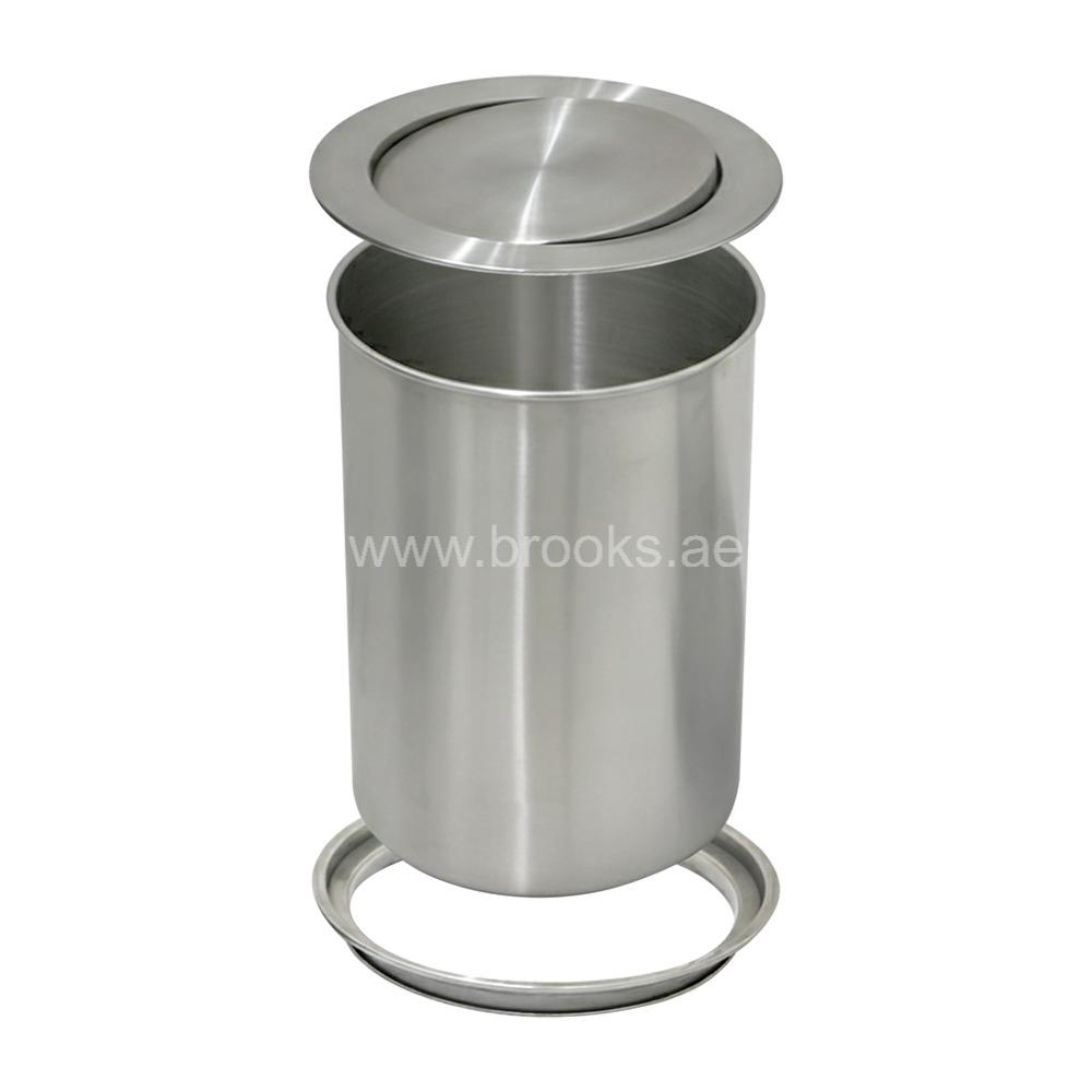 The Brooks Round Countertop Recessed Trash Can with Flap Lid (Silver Lid, 4 L) is a compact and stylish waste disposal solution designed to integrate seamlessly into your kitchen or workspace. Its recessed design allows the bin to sit within a cutout in your countertop or tabletop, leaving only the sleek silver flap lid exposed — an elegant way to manage daily waste without bulky, freestanding trash bins. Recessing the trash can into the counter creates a streamlined and modern look that keeps your workspace tidy and clutter-free. This 4-litre size is ideal for countertops, kitchen islands, home bars, coffee stations, and worktops where small amounts of waste are generated frequently. The round profile is classic and visually minimal, helping the unit blend with most décor styles.