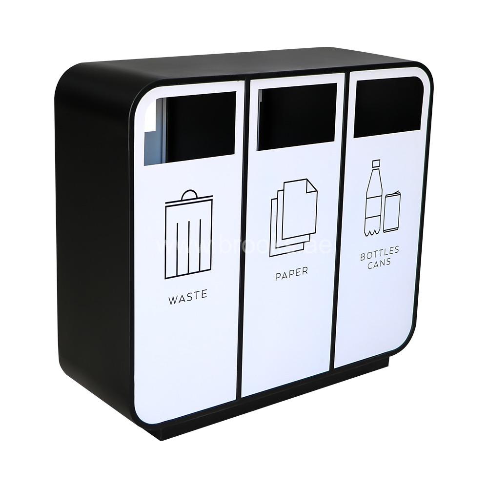 The Brooks Simplix GS 3 Stream Recycle Bin Black/White 135Ltr is designed with a sleek and contemporary aesthetic that fits seamlessly into modern commercial, corporate, and public environments. Its clean black and white finish delivers a professional and minimalistic look, allowing it to blend well with different interior settings such as offices, airports, universities, hospitals, and shopping centres. The contrasting colors not only enhance visual appeal but also help users easily identify waste disposal sections, promoting better recycling habits. Its rectangular structure is both space-efficient and stylish, making it a practical yet attractive addition to any facility.