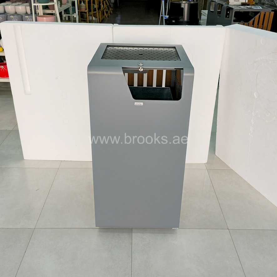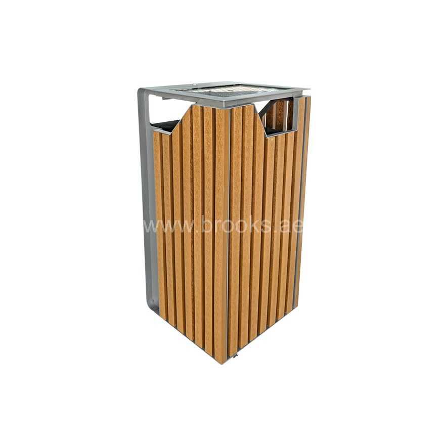 Designed to enhance cleanliness and style in modern public spaces, the Brooks Telvy Ashtray Bin offers a durable, high-capacity waste solution with a sleek, contemporary finish. With a 118-litre capacity, it is ideal for malls, office complexes, hotel entrances, outdoor seating areas, and smoking zones. The Telvy bin is constructed from a sturdy combination of galvanized steel (GS) and wood-plastic composite (WPC), offering excellent resistance to rust, weather, and daily wear. Its top-mounted stainless steel ashtray provides a neat and efficient space for cigarette disposal, while the large waste opening supports easy, contactless use.