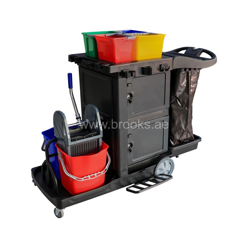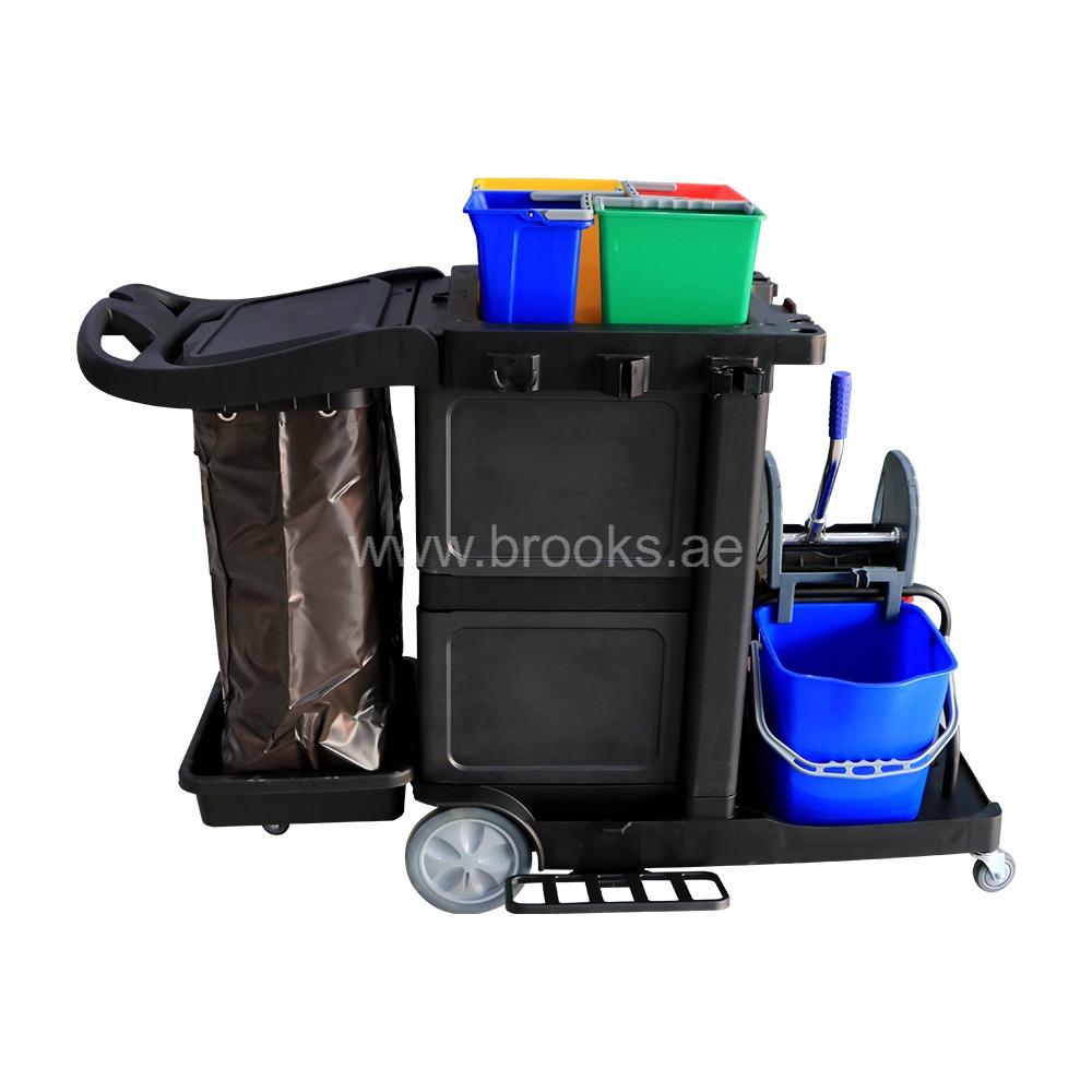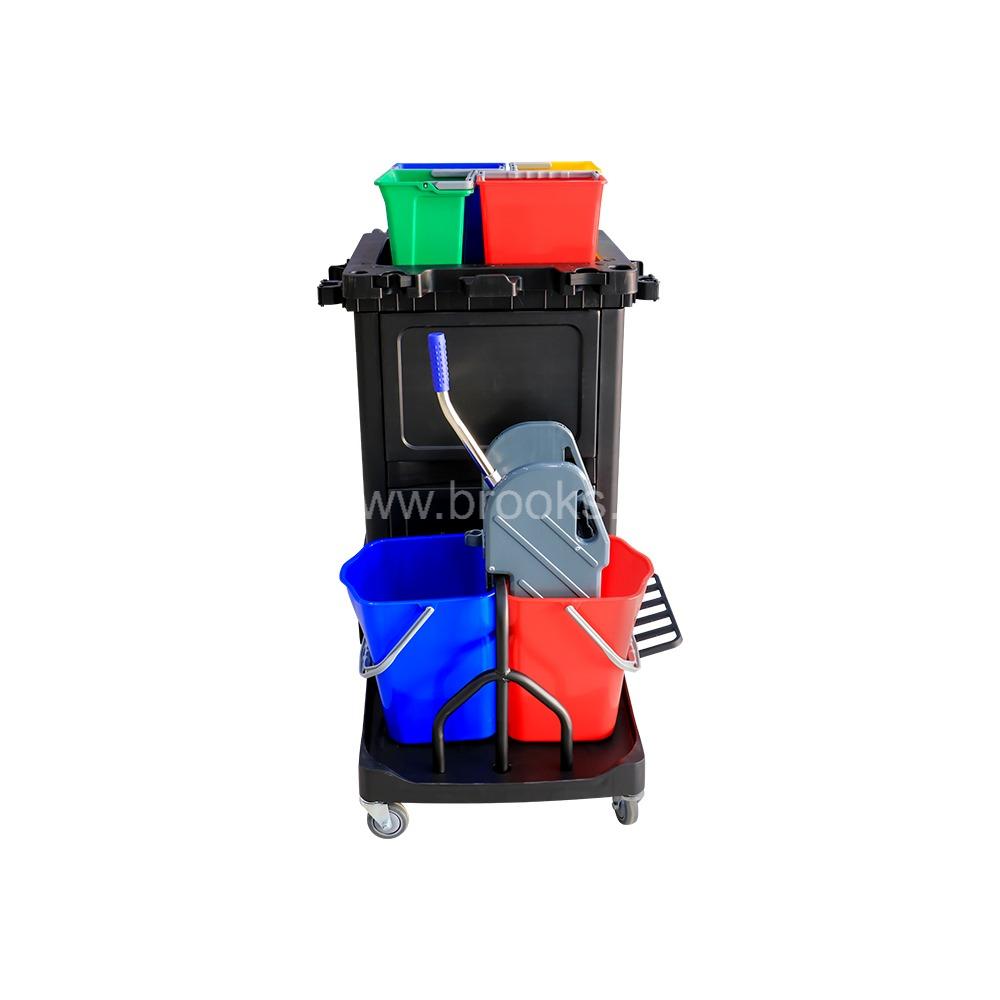 Brooks Valxio Janitor Cart Mop Wringer 20Ltr+Door+Cart Bag+4Buckets 6Ltr
