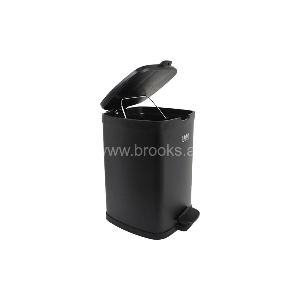 The Brooks ZIOL (DAZE) Black Square Pedal Bin is a compact and modern waste bin, ideal for smaller spaces such as bathrooms, offices, or bedrooms. This bin features a 6-liter capacity and is constructed from durable stainless steel. It has a sleek, matte black finish that is designed to be fingerprint-resistant, helping to maintain a clean and stylish appearance.The bin operates with a hands-free pedal mechanism for hygienic use, and its lid features a soft-close function that allows it to shut quietly and gently. With its square shape, it is designed to fit neatly into corners and other tight spaces, and it includes a removable inner bucket for easy disposal and cleaning.