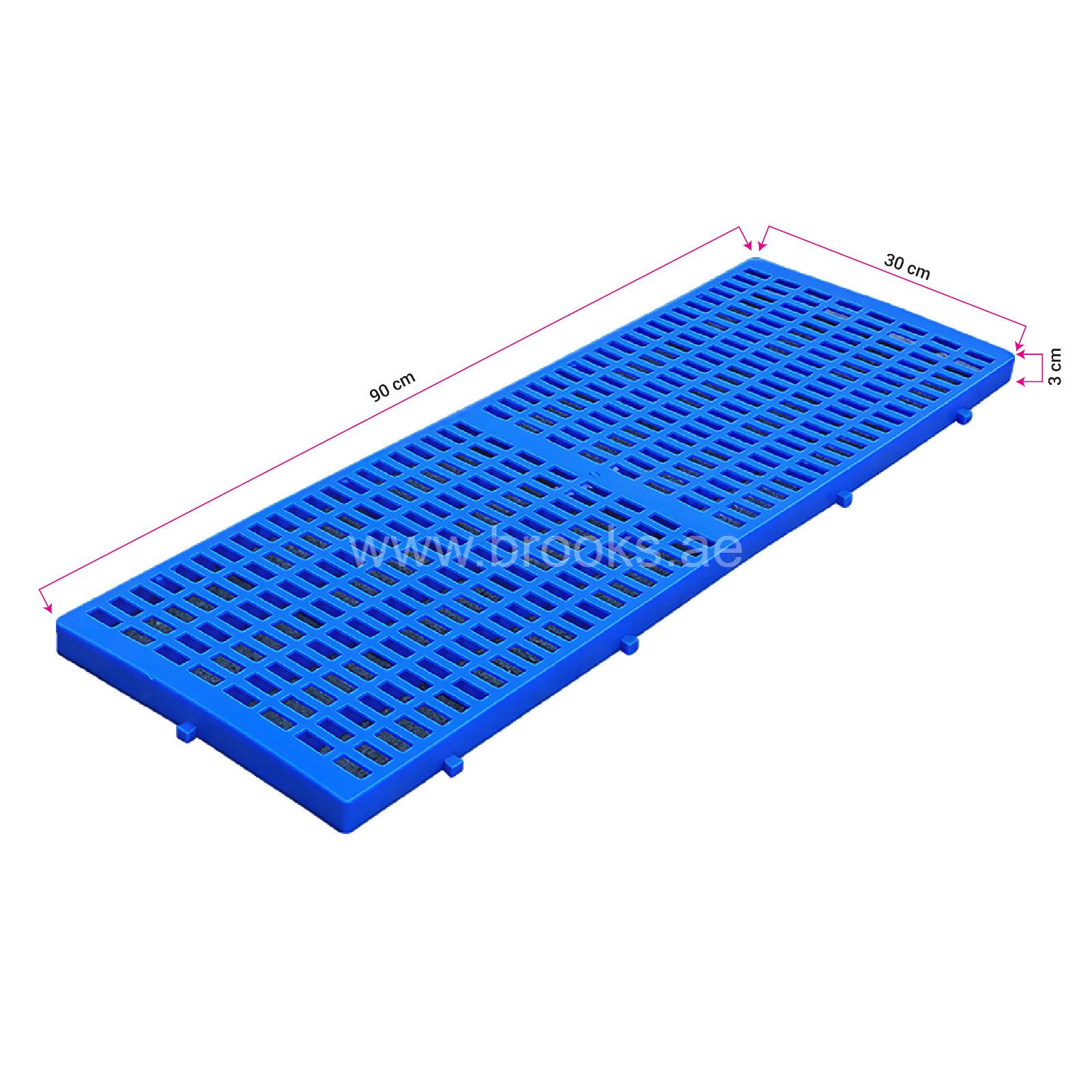 The Plastic Floor Board in Blue (90 x 30 x 3 cm) is designed to provide a sturdy and dependable surface for a wide range of environments. Whether you need a flooring solution for industrial spaces, storage rooms, walkways, or wet areas, this durable board offers exceptional support and long-lasting performance. Its reinforced structure ensures stability, making it ideal for heavy foot traffic and daily use. Crafted from premium-grade plastic, this floor board is resistant to moisture, chemicals, and impact—ensuring it maintains its strength even in challenging environments. The slightly elevated design helps improve airflow and drainage, reducing the risk of mold, moisture buildup, and slippery surfaces. Perfect for warehouses, workshops, food processing areas, and cleaning zones where hygiene and durability are essential.