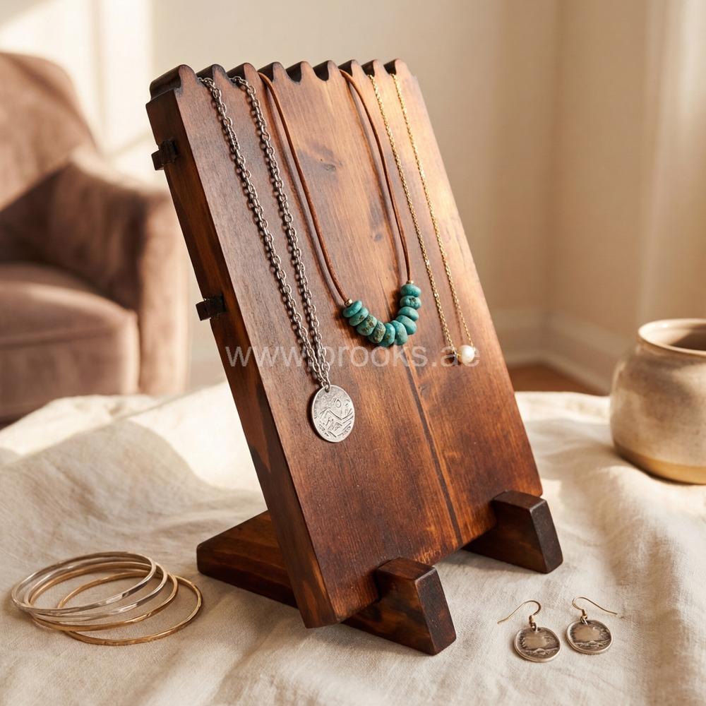 The Veelex Wooden Necklace Jewellery Display Stand is designed to showcase necklaces in a clean, elegant, and professional way. With its natural wooden construction, it adds a warm and premium look that enhances the beauty of jewelry pieces. Whether used in retail stores, exhibitions, or at home, this type of stand helps highlight necklaces by allowing them to hang naturally, making details like pendants and chains more visible and attractive.